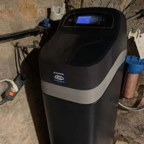 Un technicien Aqua’Bio installe et met mon adoucisseur en service.